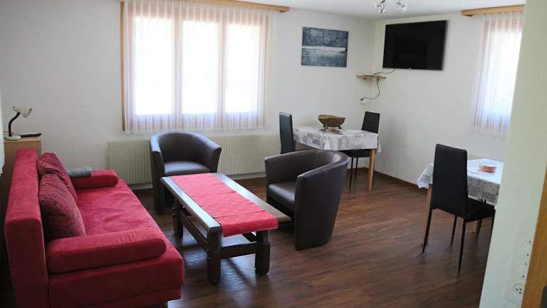 Harri's BnB in Kandersteg ist eine Ferienwohnung, die über eine Terrasse verfügt und einen gemütlichen Garten bietet. Die Unterkunft bietet kostenfreies WLAN sowie einen schönen Blick auf die Berge. Die Umgebung ist ideal für Naturfreunde und bietet zahlreiche Möglichkeiten zur Erholung.