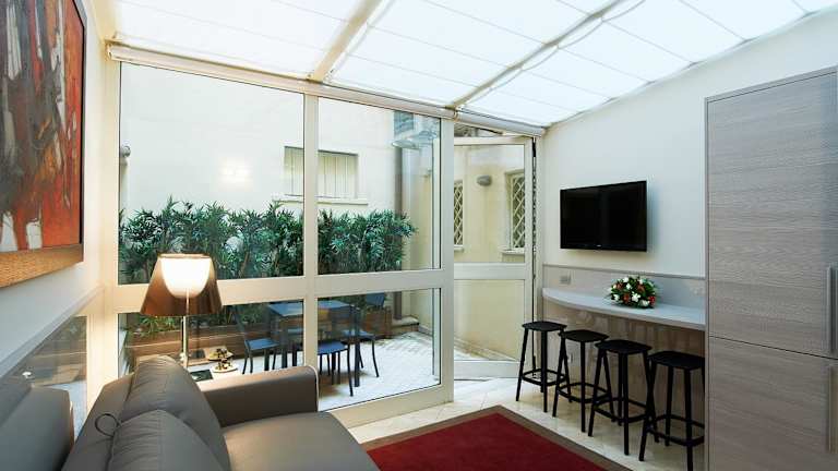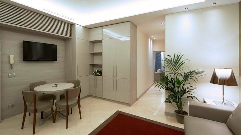 Die Apartments sind mit Klimaanlage, einer voll ausgestatteten Küchenzeile, Flachbild-TV und einem eigenen Badezimmer ausgestattet. Letzteres beinhaltet ein Bidet, kostenlose Pflegeprodukte und einen Haartrockner. Die gemütlichen Sitzbereiche laden zum Entspannen ein.