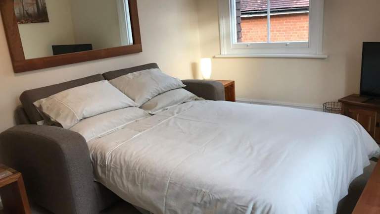 Die Ferienwohnung umfasst ein Schlafzimmer, ein Badezimmer mit Dusche, ein Wohnzimmer sowie einen Essbereich. Die Küche ist ausgestattet mit einem Kühlschrank, Geschirrspüler und Ofen. Zur Ausstattung gehören zudem ein Blu-ray-Player, Handtücher und Bettwäsche.