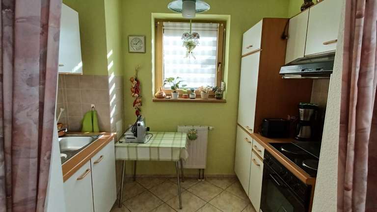 Die Ferienwohnung besteht aus einem Schlafzimmer, einem Wohnzimmer und einer voll ausgestatteten Küchenzeile, die mit einem Kühlschrank und einer Kaffeemaschine ausgestattet ist. Es gibt ein Badezimmer mit einer Dusche und einem Haartrockner. Handtücher und Bettwäsche werden zur Verfügung gestellt. Die Unterkunft bietet zudem Gartenblick und ist ideal für Familienreisen.