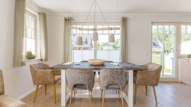 Das Ferienhaus ist ausgestattet mit 3 Schlafzimmern, einem TV sowie einer voll ausgestatteten Küche. Die Küche bietet einen Kühlschrank, Geschirrspüler, Waschmaschine, Ofen und Mikrowelle, was für Selbstversorger von grossem Nutzen ist. Eine Terrasse ergänzt die Ausstattung des Hauses.