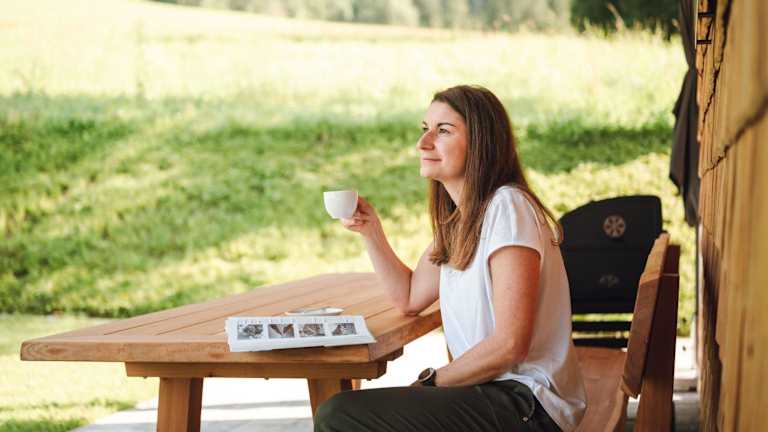 Nach einem aktiven Tag beim Wandern, Skifahren oder Velofahren können die Gäste im Garten oder in der Gemeinschaftslounge entspannen.