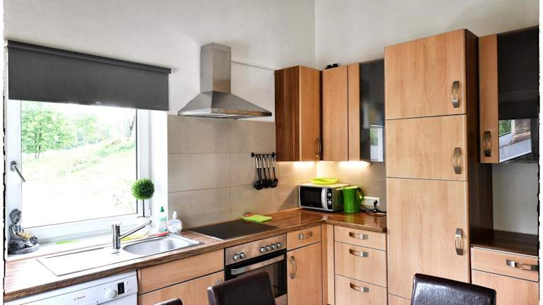 Die Ferienwohnung verfügt über zwei Schlafzimmer, ein Wohnzimmer mit Flachbild-TV, eine gut ausgestattete Küche mit Kühlschrank und Geschirrspüler sowie ein Badezimmer mit Dusche. Handtücher und Bettwäsche werden bereitgestellt.