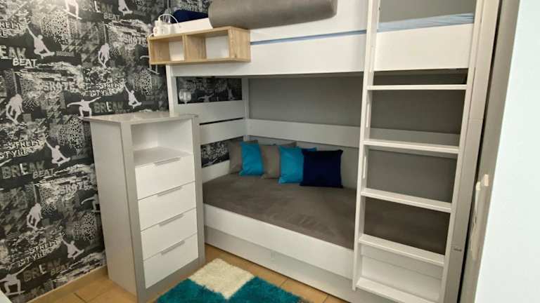 Die Ferienwohnung umfasst drei Schlafzimmer und ist mit einem Flachbild-TV mit Satellitenkanälen sowie einer voll ausgestatteten Küche ausgestattet. Diese Küche beinhaltet einen Kühlschrank, einen Geschirrspüler, eine Waschmaschine, einen Ofen und eine Mikrowelle. Gegen Aufpreis sind Handtücher und Bettwäsche erhältlich.