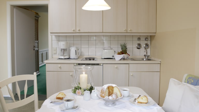 Große, geschmackvoll eingerichtete Appartements bieten viel Komfort. Alle Zimmer sind mit einem Balkon zur Südseite, Bad/WC und Küche mit Geschirrspüler ausgestattet. In der Tiefgarage haben wir Platz für Ihren Wagen. Der Aufzug bringt Sie bequem in jede Etage. Die Ein-Raum-Appartements mit rund 34 qm bieten eine vom Wohnbereich getrennte, komplett ausgestattete Küche mit gemütlicher Sitzecke. Die vier Ferienwohnungen mit rund 42 qm bieten einen großen Wohnraum, ein separates Schlafzimmer, Bad/WC/Küche und einen Essplatz. Machen Sie es sich bequem auf dem Balkon und lassen Sie Ihren Blick über den angrenzenden Park schweifen.