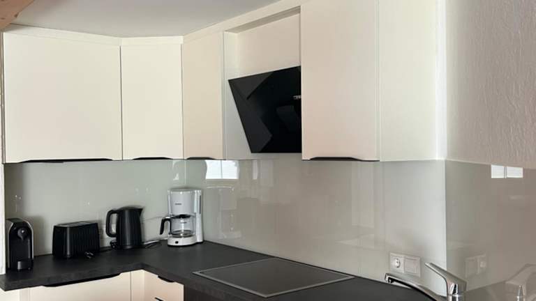In manchen Wohneinheiten gibt es eine Küche, die mit einem Kühlschrank, einem Geschirrspüler und einem Ofen ausgestattet ist.