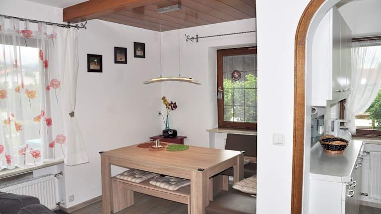 Die Ferienwohnung umfasst ein Schlafzimmer, ein Wohnzimmer mit Flachbild-TV, eine gut ausgestattete Küche mit Kühlschrank und Geschirrspüler sowie ein Badezimmer mit Dusche. Des Weiteren steht eine Terrasse mit Bergblick zur Verfügung. Handtücher und Bettwäsche werden bereitgestellt.