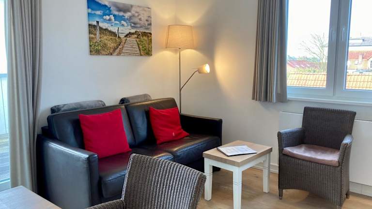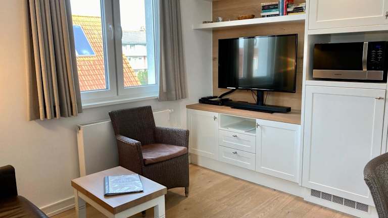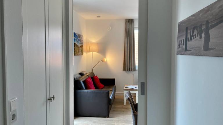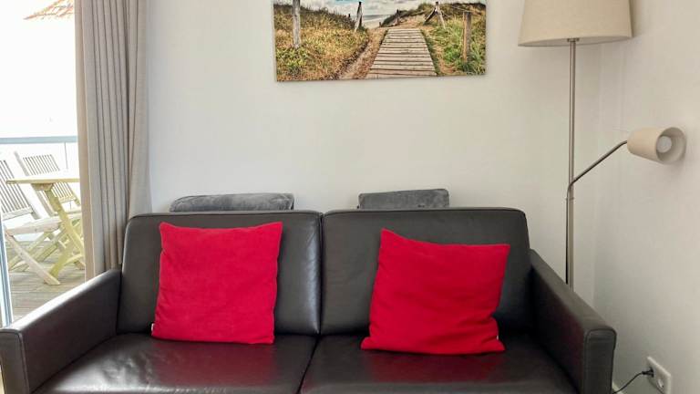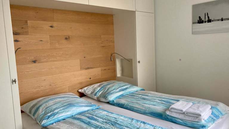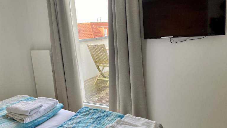 Die Ferienwohnung verfügt über einen Balkon, ein Schlafzimmer, ein Wohnzimmer und eine gut ausgestattete Küche mit Kühlschrank und Geschirrspüler. Handtücher und Bettwäsche werden bereitgestellt.