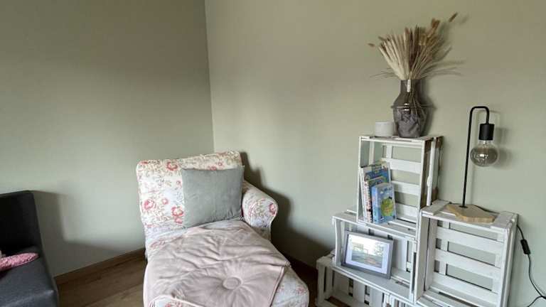 Die Ferienwohnung besteht aus einem Schlafzimmer, einem Wohnzimmer, einer voll ausgestatteten Küche mit Kühlschrank und Kaffeemaschine sowie einem Badezimmer mit Dusche und kostenlosen Pflegeprodukten. Handtücher und Bettwäsche werden gestellt. Die Ausstattung trägt zur Bequemlichkeit der Gäste bei.