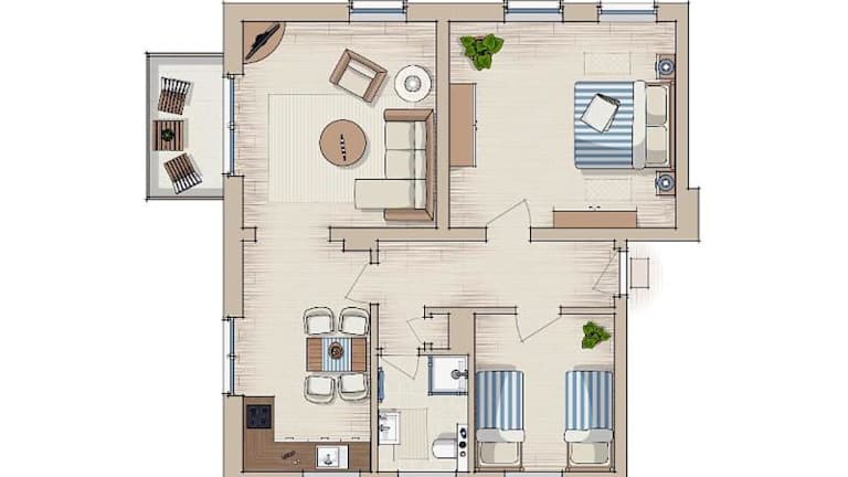 Die Ferienwohnung verfügt über 2 Schlafzimmer, Kabel TV und eine moderne Küche mit Kühlschrank und Geschirrspüler.