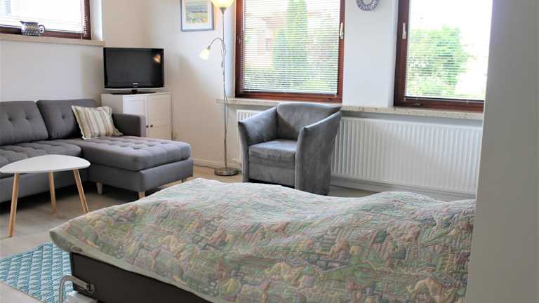 Die Unterkunft besteht aus einem Schlafzimmer, einem Wohnzimmer und einer voll ausgestatteten Küchenzeile mit Kühlschrank und Kaffeemaschine. Ein Badezimmer mit Dusche ist ebenfalls vorhanden. Die Gäste können Handtücher und Bettwäsche gegen Aufpreis erhalten.