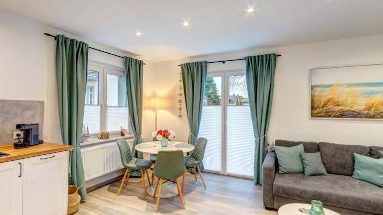 Haus Barnheide - Wohnung Silbermöwe bietet den Gästen eine heimelige Atmosphäre mit einem Balkon und einem Garten. Die Ferienwohnung ist für Nichtraucher geeignet und bietet verschiedene Annehmlichkeiten, darunter kostenloses Wifi in allen Bereichen, Heizung und eine Parkiermöglichkeit vor Ort. Es wird darauf hingewiesen, dass keine Junggesellen-/Junggesellinnenabschiede oder ähnliche Feiern gestattet sind. Eine Überweisung zur Zahlung ist vor der Anreise erforderlich.