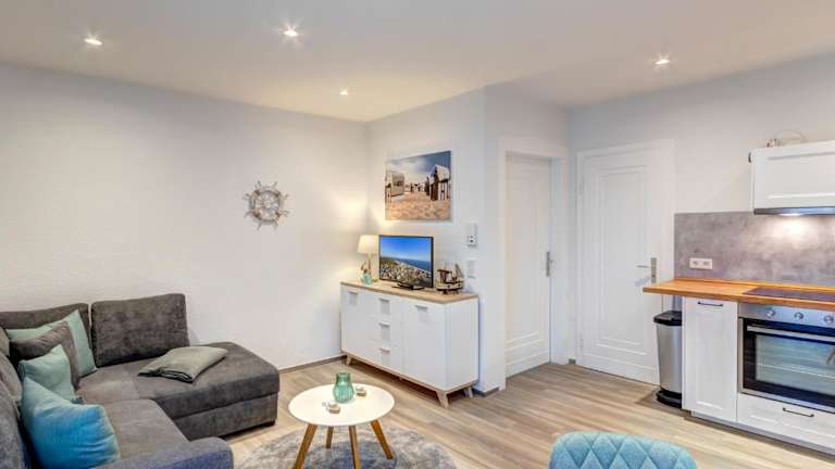 Die Wohnung besteht aus einem Schlafzimmer und einem Wohnzimmer, ausgestattet mit einer voll ausgestatteten Küche, die einen Kühlschrank und einen Wasserkocher umfasst. Zudem verfügt die Ferienwohnung über ein Badezimmer, das mit einer Dusche und einem Haartrockner ausgestattet ist. Handtücher und Bettwäsche werden ebenfalls zur Verfügung gestellt.