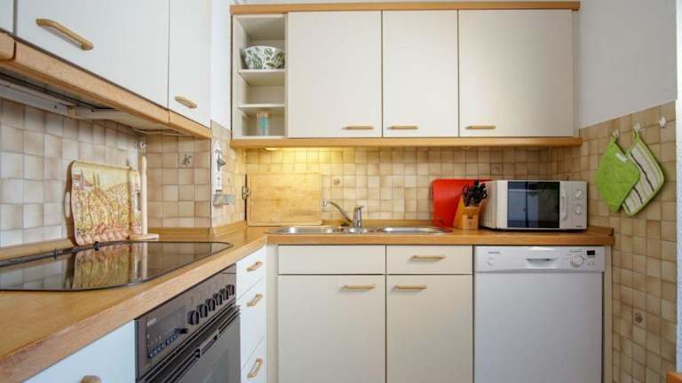 Die Ferienwohnung verfügt über einen Balkon, ein Schlafzimmer, ein Wohnzimmer und eine gut ausgestattete Küche mit einem Kühlschrank und einem Geschirrspüler. Handtücher und Bettwäsche werden bereitgestellt, um den Gästen den Aufenthalt so angenehm wie möglich zu gestalten.