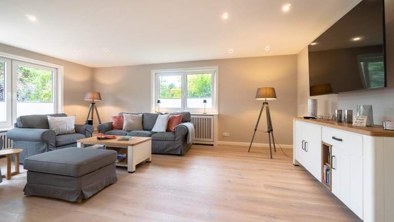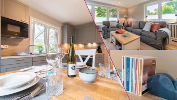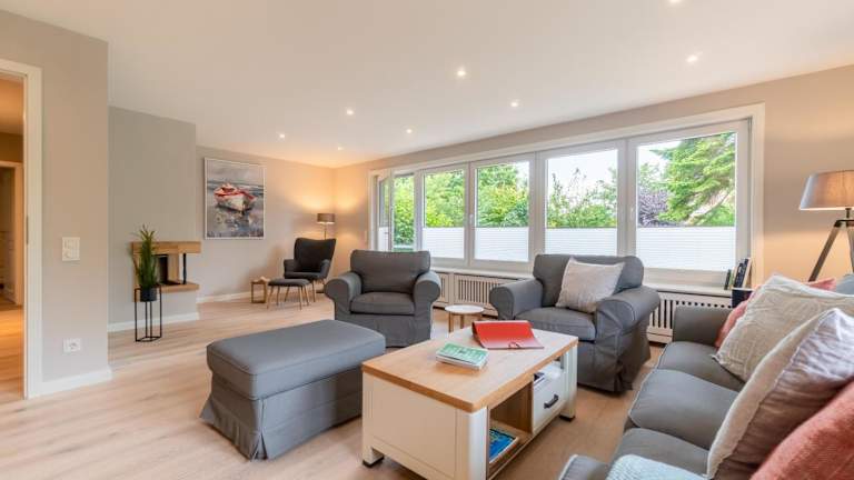 Die Ferienwohnung verfügt über insgesamt 4 Schlafzimmer und eine voll eingerichtete Küche mit Kühlschrank und Geschirrspüler. Zwei Badezimmer sind vorhanden, ausgestattet mit Dusche, Haartrockner und Waschmaschine. Handtücher und Bettwäsche werden zur Verfügung gestellt.