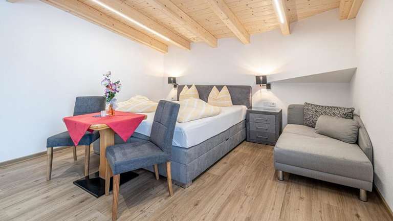 In jedem Zimmer befindet sich ein eigenes Badezimmer. Bestimmte Zimmer sind zusätzlich mit einem Balkon ausgestattet und bieten einen herrlichen Bergblick.