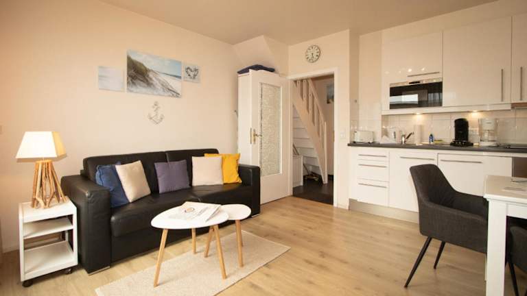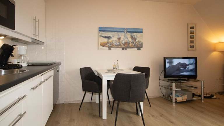 Die Ferienwohnung verfügt über 1 Schlafzimmer und ist ausgestattet mit einem TV mit Satellitenkanälen und einer voll ausgestatteten Küche, die einen Kühlschrank, einen Geschirrspüler, eine Waschmaschine und eine Mikrowelle umfasst. Es sind Gartenmöbel vorhanden.