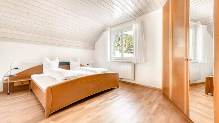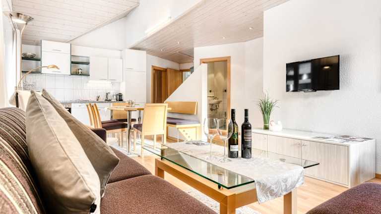 Die Ferienwohnung bietet Platz in 2 Schlafzimmern und einem Wohnzimmer. Sie verfügt über einen Balkon mit Bergblick, einen Flachbild-TV sowie eine gut ausgestattete Küche mit Kühlschrank und Geschirrspüler. Ein Badezimmer mit Badewanne gehört ebenfalls zur Ausstattung. Handtücher und Bettwäsche werden zur Verfügung gestellt.