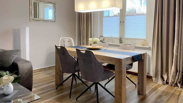 Haus 'Concordia' - WG11 'Liuba' ist eine Ferienwohnung mit Terrasse, die gemütliche Übernachtungsmöglichkeiten bietet. Die Unterkunft ist bestens ausgestattet und ist ideal für einen erholsamen Aufenthalt dicht am Strand.