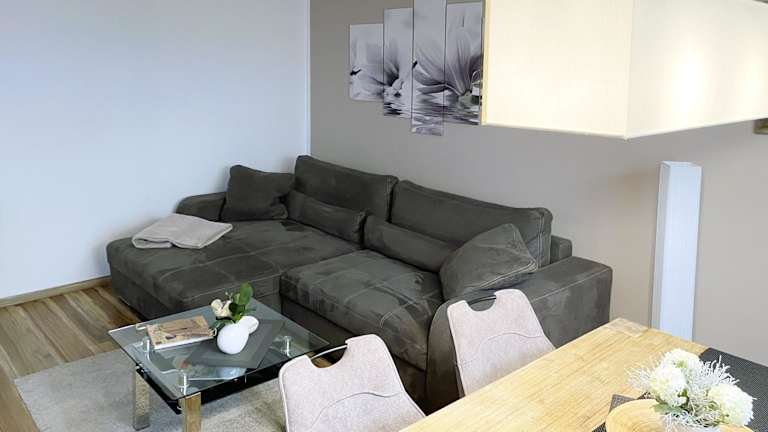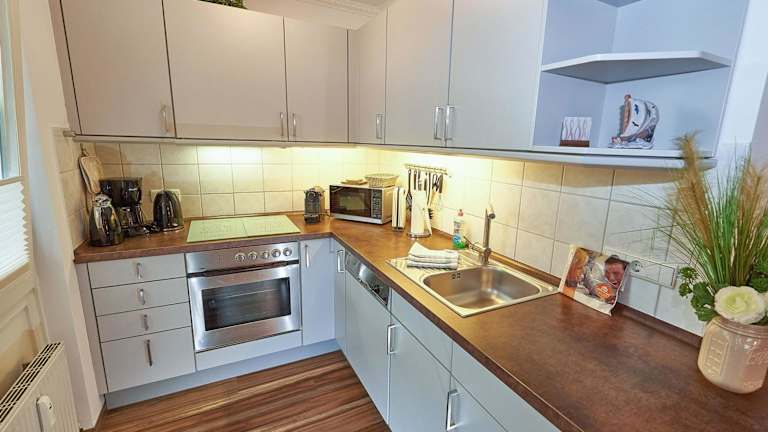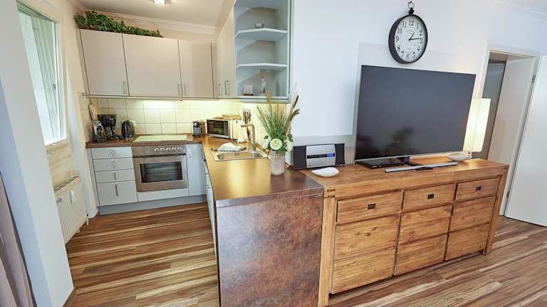 Die Ferienwohnung umfasst 1 Schlafzimmer, ein Wohnzimmer sowie eine voll ausgestattete Küchenzeile mit Kühlschrank und Kaffeemaschine. Das Badezimmer ist mit einer Dusche und einem Haartrockner ausgestattet. Ein Flachbild-TV mit Satellitenkanälen und ein DVD-Player sind ebenfalls vorhanden.