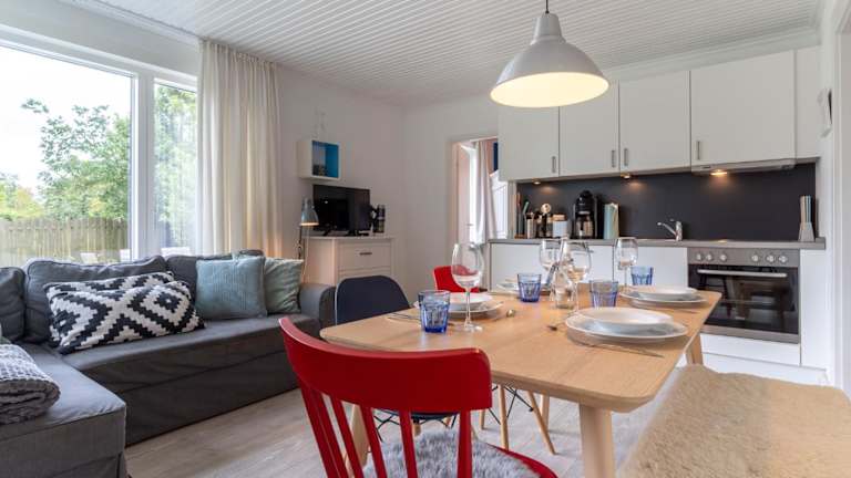 Die Ferienwohnung besteht aus zwei Schlafzimmern und ist ausgestattet mit einem TV sowie einer voll ausgestatteten Küche, die einen Kühlschrank und einen Geschirrspüler beinhaltet. Die Gäste können sich in den Nichtraucherzimmern wohlfühlen, und es stehen Gartenmöbel bereit, um das Draussensein zu geniessen.