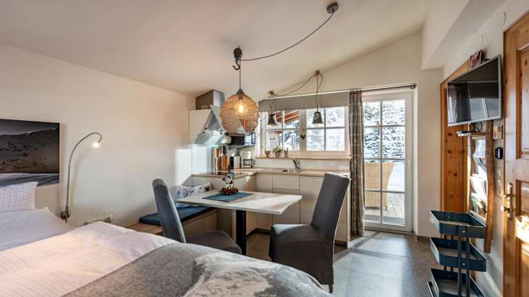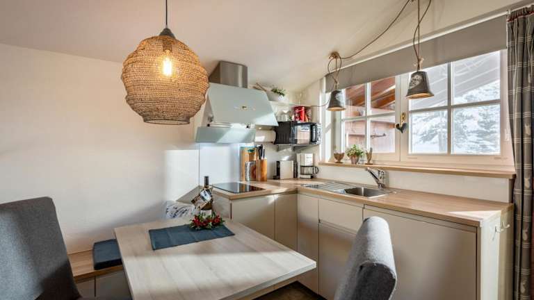 Die Ferienwohnung im Haus Den Rappen ist mit einer voll ausgestatteten Küche ausgestattet, die über einen Kühlschrank, eine Mikrowelle, einen Toaster, eine Kaffeemaschine und einen Wasserkocher verfügt. Dies ermöglicht Gästen die Zubereitung eigener Mahlzeiten und das Geniessen von selbst gebackenem Zopf oder anderen Leckereien.