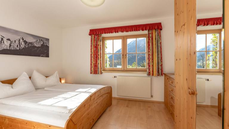 Die Ferienwohnung bietet zwei Schlafzimmer und zwei Badezimmer, ausgestattet mit allen notwendigen Annehmlichkeiten. Dazu gehören Bettwäsche, Handtücher, ein Flachbild-TV mit Kabelkanälen, ein Essbereich sowie eine voll ausgestattete Küche. Eine Terrasse mit Blick auf die Berge rundet das Angebot ab.