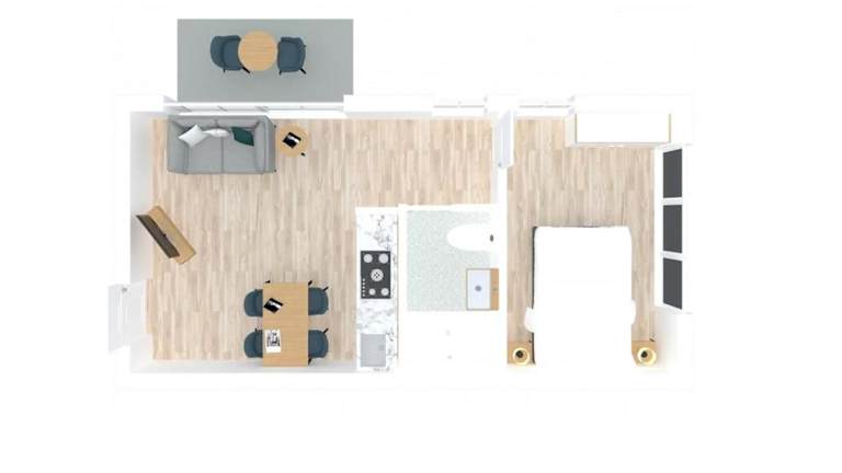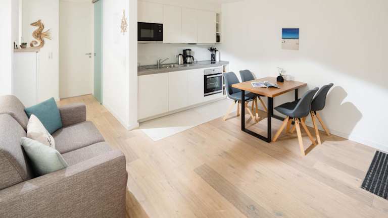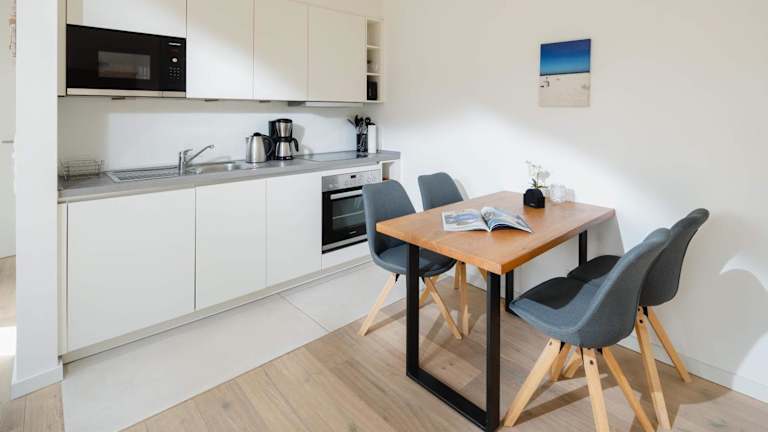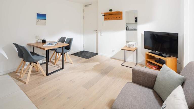 Die Ferienwohnung ist mit 1 Schlafzimmer ausgestattet und verfügt über einen TV mit Kabelkanälen. Eine voll ausgestattete Küche steht zur Verfügung, die einen Kühlschrank, einen Geschirrspüler, eine Waschmaschine, einen Ofen sowie eine Mikrowelle beinhaltet. Handtücher und Bettwäsche sind ebenfalls bereitgestellt.