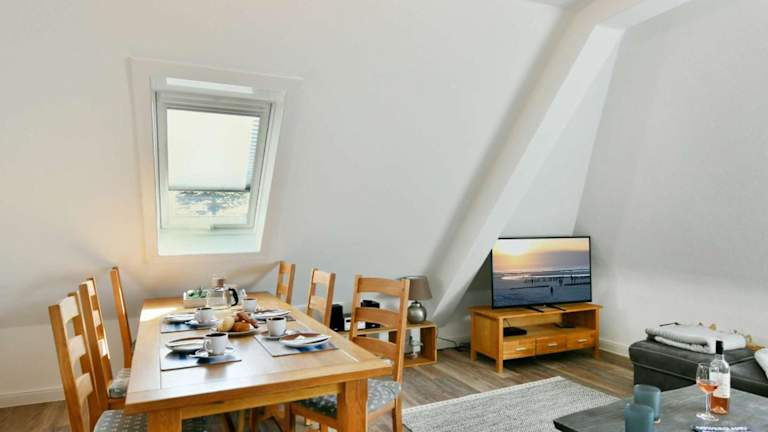 Haus Dünenrose Ferienwohnung 3 bietet einen schönen Blick aufs Meer und ermöglicht den Gästen einen Aufenthalt in einer heimeligen Atmosphäre. Die Unterkunft ist mit einem Garten sowie einem Balkon ausgestattet, was zur Entspannung im Freien einlädt. Bei dieser Ferienwohnung handelt es sich um ein Nichtraucherobjekt. Haustiere sind erlaubt.