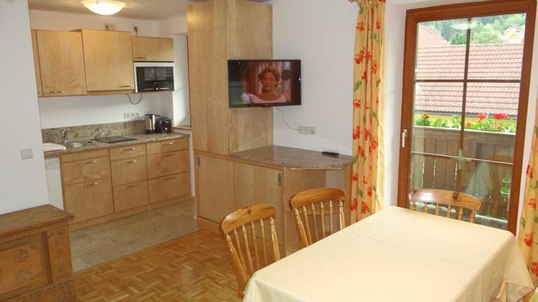 Die Apartments im Landhausstil im Hotel Haus Edelweiss sind gemütlich eingerichtet und verfügen über Holzböden und einen Wohnbereich mit einem Sofa. Jedes Apartment hat einen Balkon mit herrlichem Bergblick. Eine voll ausgestattete Küche mit Kochmöglichkeiten und Geschirrspüler ist ebenfalls vorhanden. Die Apartments verfügen auch über ein eigenes Bad.