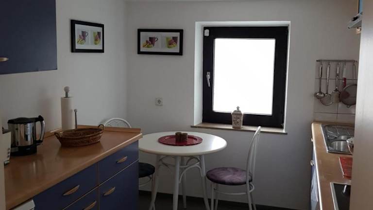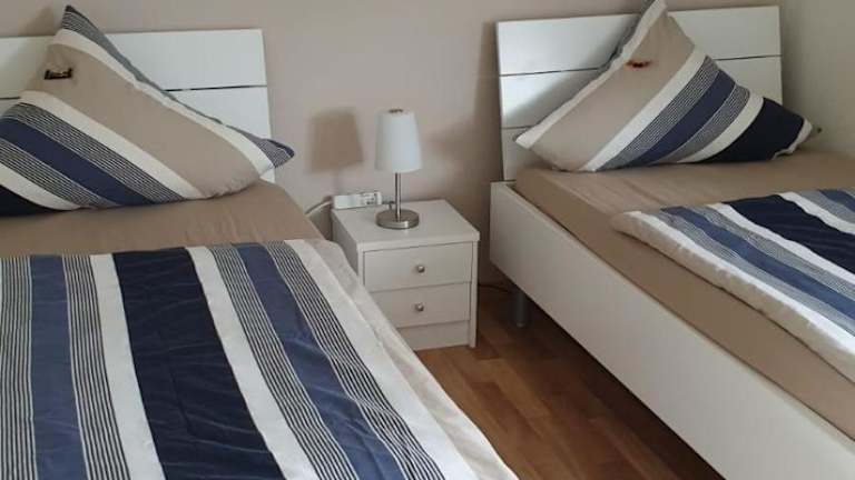 Die Ferienwohnung besteht aus einem Schlafzimmer, einem Wohnzimmer sowie einer voll ausgestatteten Küche mit Kühlschrank und Kaffeemaschine. Ein Badezimmer mit Dusche und Haartrockner ist ebenfalls vorhanden. Handtücher und Bettwäsche werden bereitgestellt und nach den Richtlinien der örtlichen Behörden gewaschen.