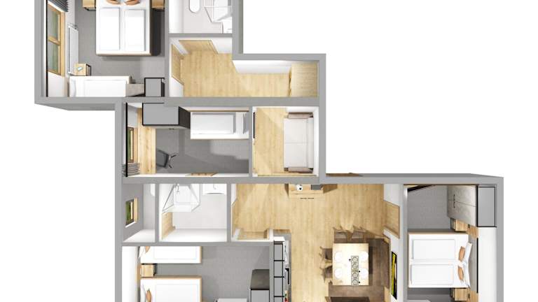 Die Unterkünfte verfügen über Fliesenböden und sind mit einem Kabel Flachbild-TV, einem Safe sowie einer voll ausgestatteten Küche mit Kühlschrank, Geschirrspüler, Mikrowelle, Herdplatte, Kaffeemaschine und Wasserkocher ausgestattet. Jedes Zimmer hat zudem ein eigenes Badezimmer mit Dusche.