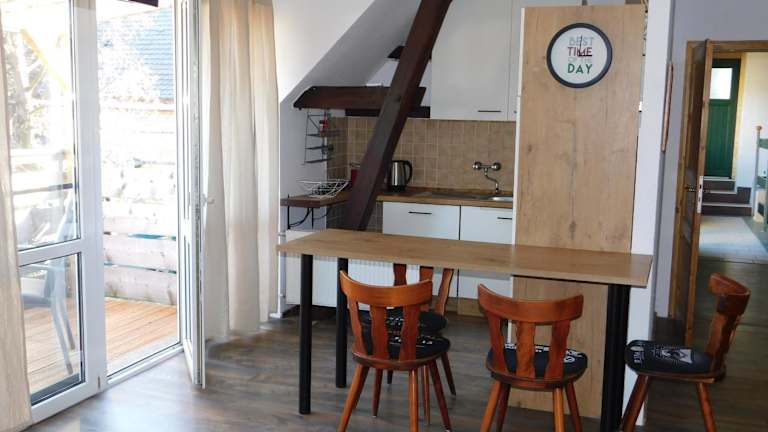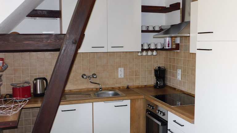 Die Wohneinheiten im Haus Feierabend sind mit einer voll ausgestatteten Küche ausgestattet, die Kühlschrank, Ofen, Kaffeemaschine und Wasserkocher umfasst. Ein Essbereich sowie Sitzgelegenheiten sorgen für Bequemlichkeit. Handtücher und Bettwäsche werden gemäss den Richtlinien der örtlichen Behörden gewaschen.