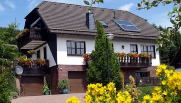 Unsere gemütliche 4-Sterne Ferienwohnung liegt in ruhiger Südhanglage, direkt am Waldrand. Wunderschöne Wanderwege beginnen direkt vor der Haustür und doch liegt unser Haus nur wenige Gehminuten vom Ortszentrum entfernt. Die Wohnung hat ca. 70 qm, ist hell und lichtdurchflutet und bietet ausreichend Platz für 4 Personen. Sie ist komfortabel und behaglich eingerichtet und verfügt über zwei getrennte Schlafzimmer, ein großes, lichtdurchflutetes und gemütliches Wohn- Esszimmer mit Relax - Couch, Flachbild TV, - Kostenloses WLAN-, eine Küche ausgestattet mit Spülmaschine, Mikrowelle, Kaffeemaschine, Senseo-Kaffeeautomat, Toaster und vielem mehr und ein Badezimmer mit Dusche, Badewanne und WC. Direkt vom Wohnzimmer betreten sie den großen Balkon in Süd-West Lage, mit Elektro- Markise und mit traumhafter Aussicht auf unsere schöne Sauerländer Bergwelt. Der ideale Platz zum "runterkommen" und entspannen von der Hektik des Alltags, bei herrlicher Ruhe und wunderschönem Blick auf unsere schöne Natur. Unsere neu gestalteten Außenanlagen bieten Ihnen eine gemütliche Gartenhütte mit Terrasse, Gartenmöbeln und einem Grill, sowie eine Liegewiese mit viel Platz für Ihre Kinder zum Spielen. Ein PKW- Stellplatz ist direkt auf unserem Grundstück vorhanden und für Motorräder, Fahrräder und E-Bikes stellen wir Ihnen gerne Stellplätze in einer abschließbaren Garage zur Verfügung. In der Garage befindet sich auch eine Ladestation für Ihr E-Bike.