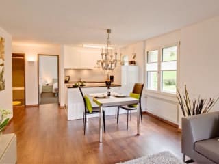 Ruhig und direkt vor der Busstation (Elektrobus) Die Wohnung Karibu Parterre wird Ihnen hier angeboten. Sie mieten eine komplett eingerichtete Ferienwohnung.