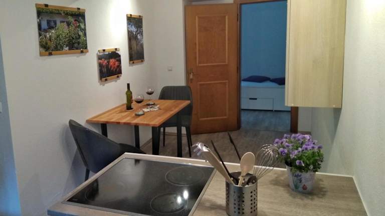 Die Ferienwohnung umfasst 1 Schlafzimmer, eine voll ausgestattete Küche und 1 Badezimmer. Handtücher und Bettwäsche werden bereitgestellt.