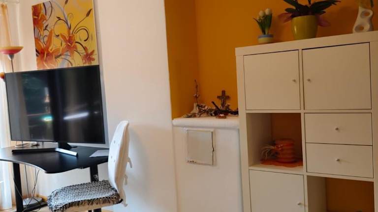 Die Ferienwohnung bietet ein Schlafzimmer, ein Wohnzimmer sowie eine voll ausgestattete Küche mit Kühlschrank und Kaffeemaschine. Des Weiteren gibt es ein Badezimmer mit Dusche und Haartrockner. Handtücher und Bettwäsche werden zur Verfügung gestellt.