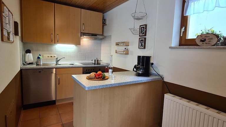 Die Ferienwohnung ist komfortabel eingerichtet und bietet einen Flachbild-TV. Die Küche ist mit einem Kühlschrank, Geschirrspüler, Ofen, Kaffeemaschine und Wasserkocher ausgestattet.