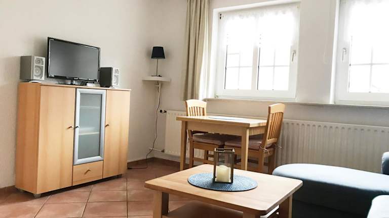 Die Ferienwohnung verfügt über ein Schlafzimmer und ist ausgestattet mit einem TV mit Satellitenkanälen. Eine voll ausgestattete Küche mit Kühlschrank, Geschirrspüler, Waschmaschine, Ofen und Herdplatte steht den Gästen zur Verfügung.
