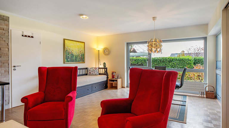 Das Haus Frölich befindet sich in einer ruhigen Umgebung mit Gartenblick und ist etwa 23 km vom Hauptbahnhof Freiburg (Breisgau) entfernt. Die nahegelegenen Sehenswürdigkeiten umfassen unter anderem das Freiburger Münster in 24 km Entfernung und Messe Freiburg, das ebenfalls 24 km entfernt ist. Die Umgebung bietet Möglichkeiten für Aktivitäten wie Wandern und Velofahren.