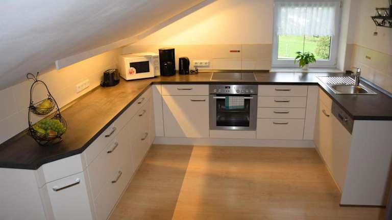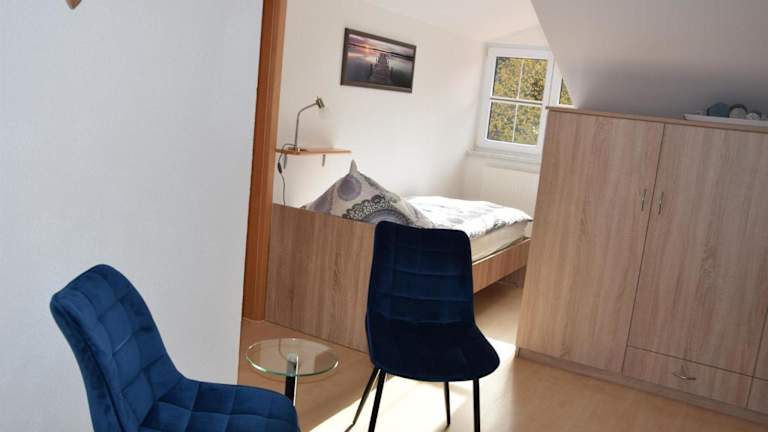 Die Ferienwohnung umfasst ein Schlafzimmer, ein Wohnzimmer sowie eine voll ausgestattete Küche mit Kühlschrank und Kaffeemaschine. Zudem steht ein Badezimmer mit Dusche und Haartrockner zur Verfügung. Handtücher und Bettwäsche werden bereitgestellt.