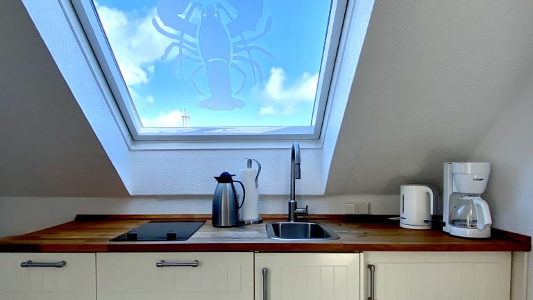 Die Ferienwohnung Germania befindet sich im Obergeschoß des gleichnamigen Hauses im Oberland. Sie ist aufgeteilt in einen Schlafbereich und einen Wohn-/Essbereich mit Küche. Die Wohnung liegt zur Inselseite.