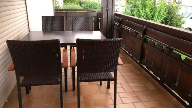 Die Ferienwohnung ist ausgestattet mit einem Balkon, einem Schlafzimmer, einem Wohnzimmer und einer gut ausgestatteten Küchenzeile, die über einen Kühlschrank und einen Ofen verfügt. Zudem ist ein Fernseher vorhanden.