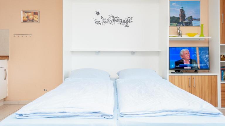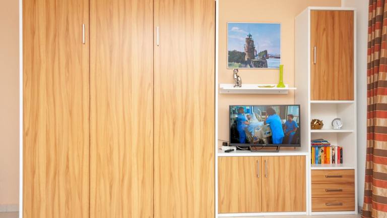Die Wohnung verfügt über zwei Schlafzimmer, einen TV, eine gut ausgestattete Küche mit Kühlschrank und Ofen sowie ein Badezimmer mit Dusche. Der zusätzliche Komfort umfasst Handtücher und Bettwäsche, die gegen Aufpreis bereitgestellt werden können.