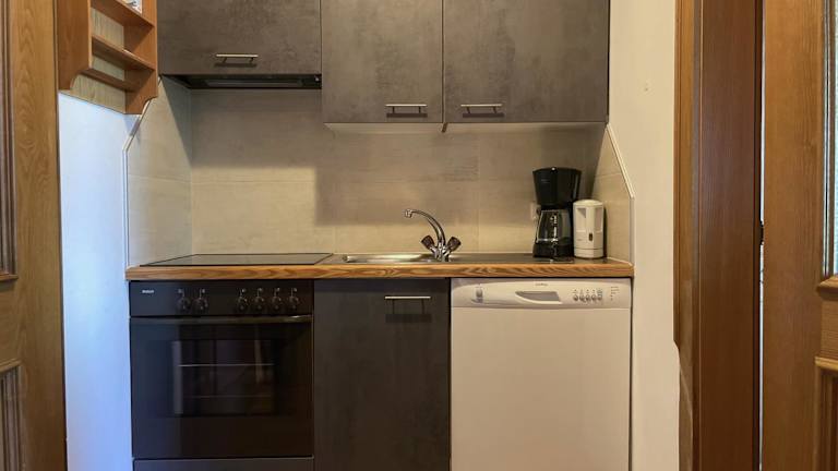 Die Ferienwohnung bietet ein Schlafzimmer, eine gut ausgestattete Küche mit Kühlschrank und Geschirrspüler, ein Wohnzimmer sowie einen Fernseher. Zudem steht ein Balkon zur Verfügung. Handtücher und Bettwäsche werden bereitgestellt.