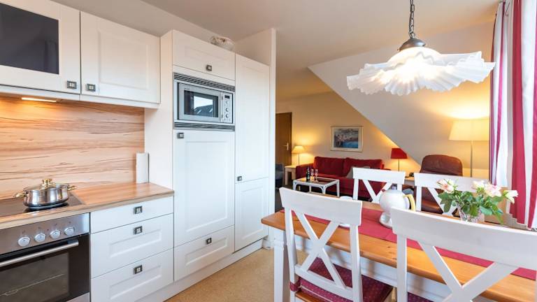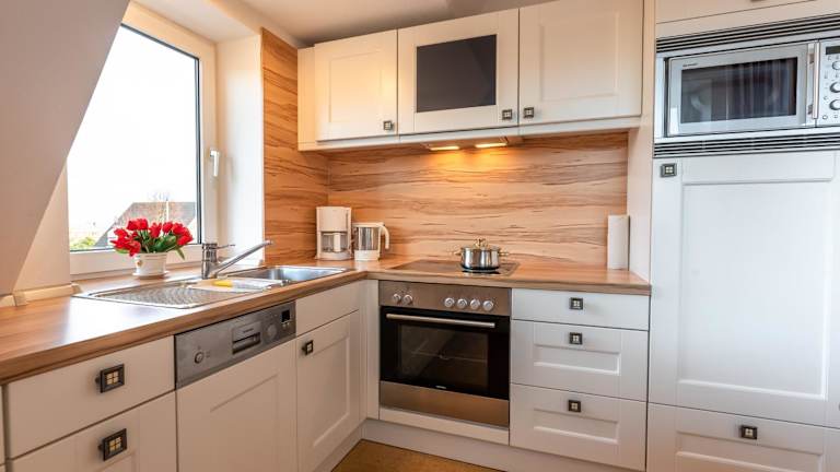 Die Ferienwohnung verfügt über 2 Schlafzimmer und eine Küchenzeile, die mit einem Kühlschrank, einem Geschirrspüler sowie einer Kaffeemaschine ausgestattet ist. Des Weiteren gibt es einen TV. Die Unterkunft bietet Nichtraucherzimmer und allergikerfreundliche Zimmer an.
