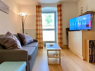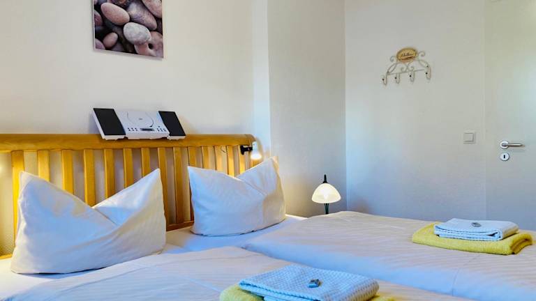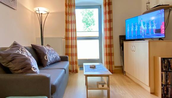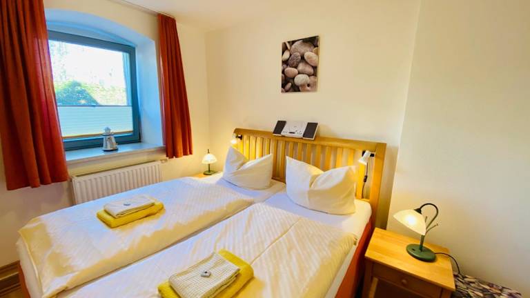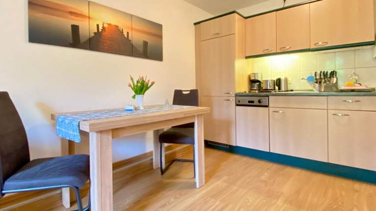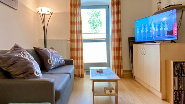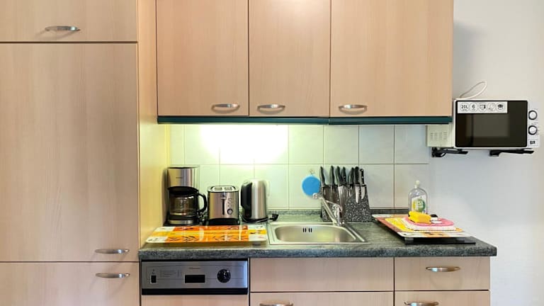 Die Ferienwohnung verfügt über ein Schlafzimmer, ein Wohnzimmer mit einem Flachbild-TV, eine voll ausgestattete Küche mit Kühlschrank und Geschirrspüler sowie ein Badezimmer mit Dusche. Handtücher und Bettwäsche werden bereitgestellt.
