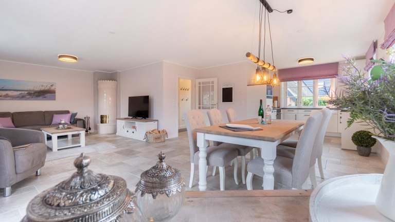 Das Haus Inselurlaub Hausteil 2 ist ein Ferienhaus, das den Gästen einen kostenlosen Privatparkplatz bietet und eine heimelige Atmosphäre aufweist.