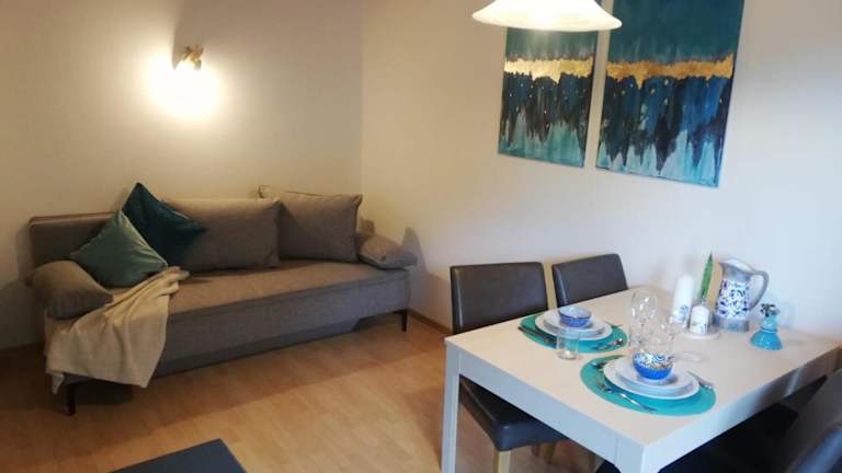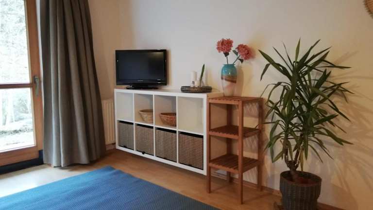 Die Ferienwohnung verfügt über 1 Schlafzimmer, 1 Badezimmer, Bettwäsche, Handtücher, einen TV mit Satellitenkanälen, einen Essbereich, eine voll ausgestattete Küche sowie eine Terrasse mit Blick auf die Berge.
