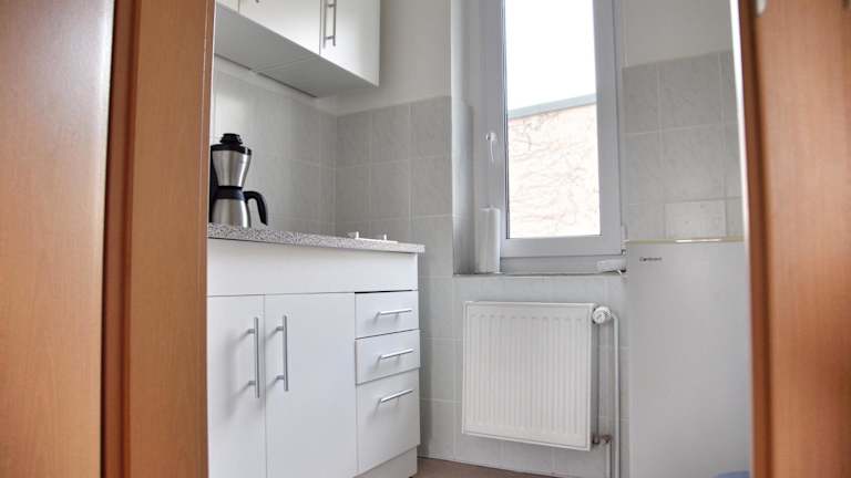 Die Ferienwohnung ist ausgestattet mit einem Schlafzimmer, einer Küche mit Kühlschrank und Toaster, sowie einem Badezimmer mit Dusche und Haartrockner. Handtücher und Bettwäsche werden zur Verfügung gestellt.